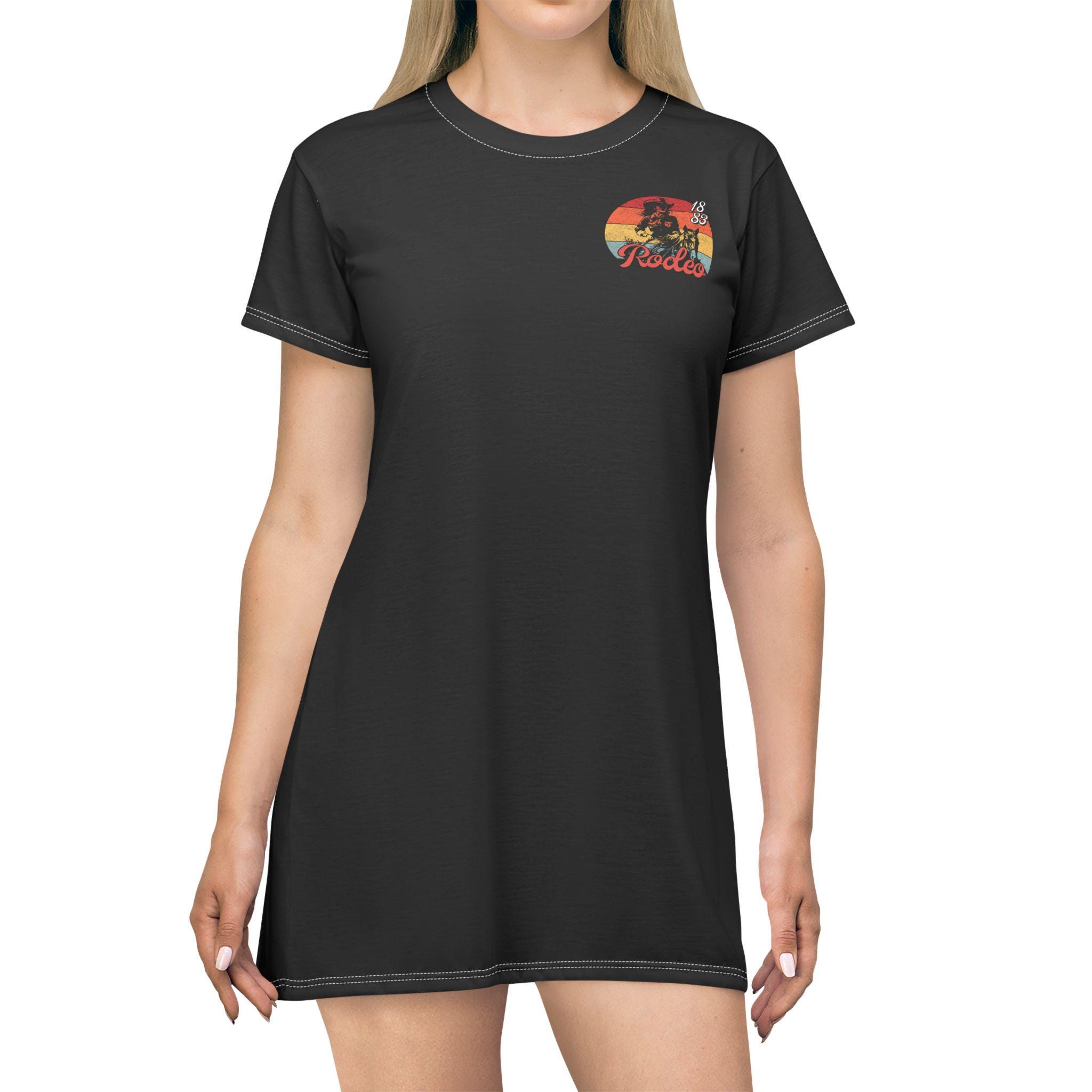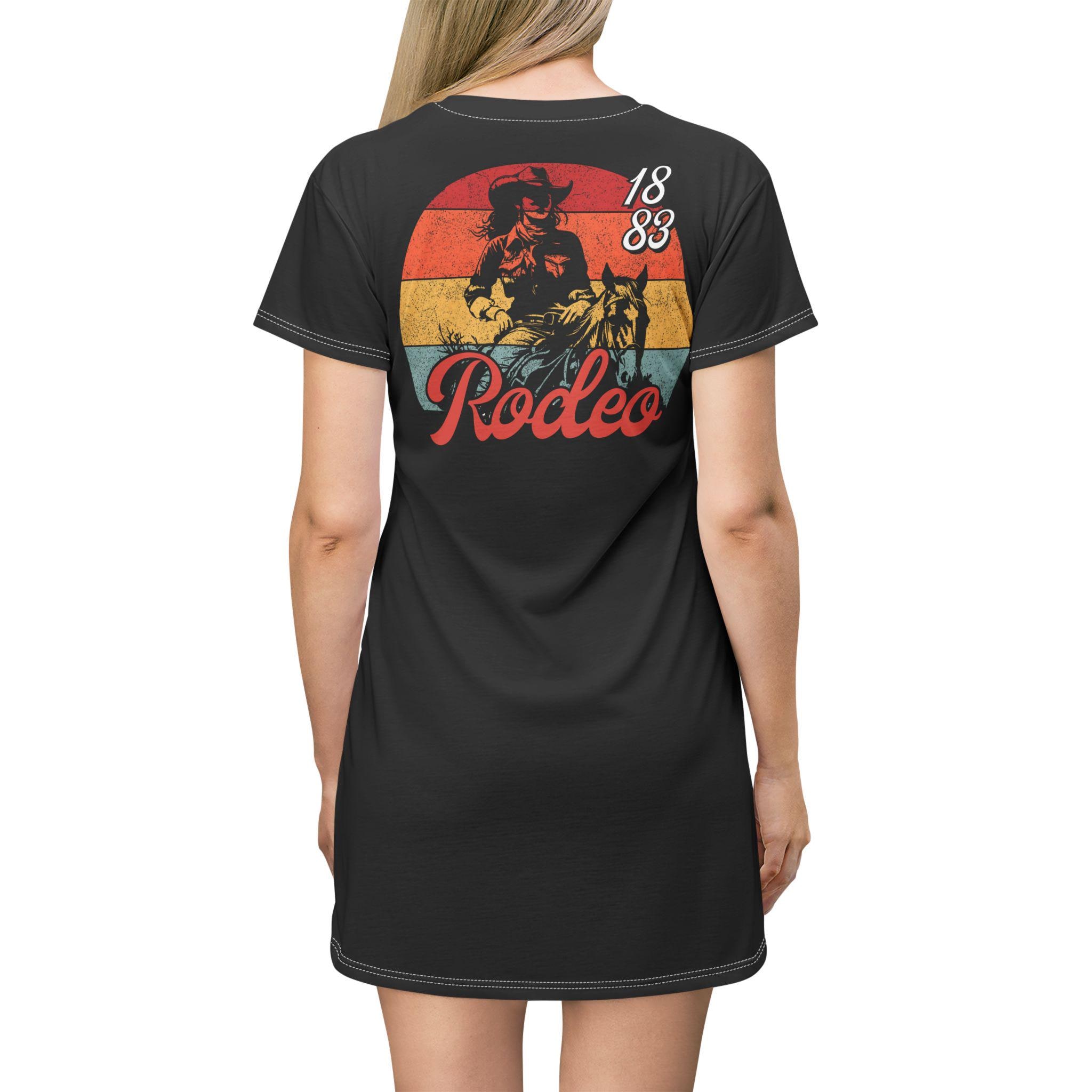 Retro Rodeo T-Shirt Dress, Boho Chic Summer Dress, Western Style Casual Wear, Country Concert Outfit, Gift for Cowgirls
