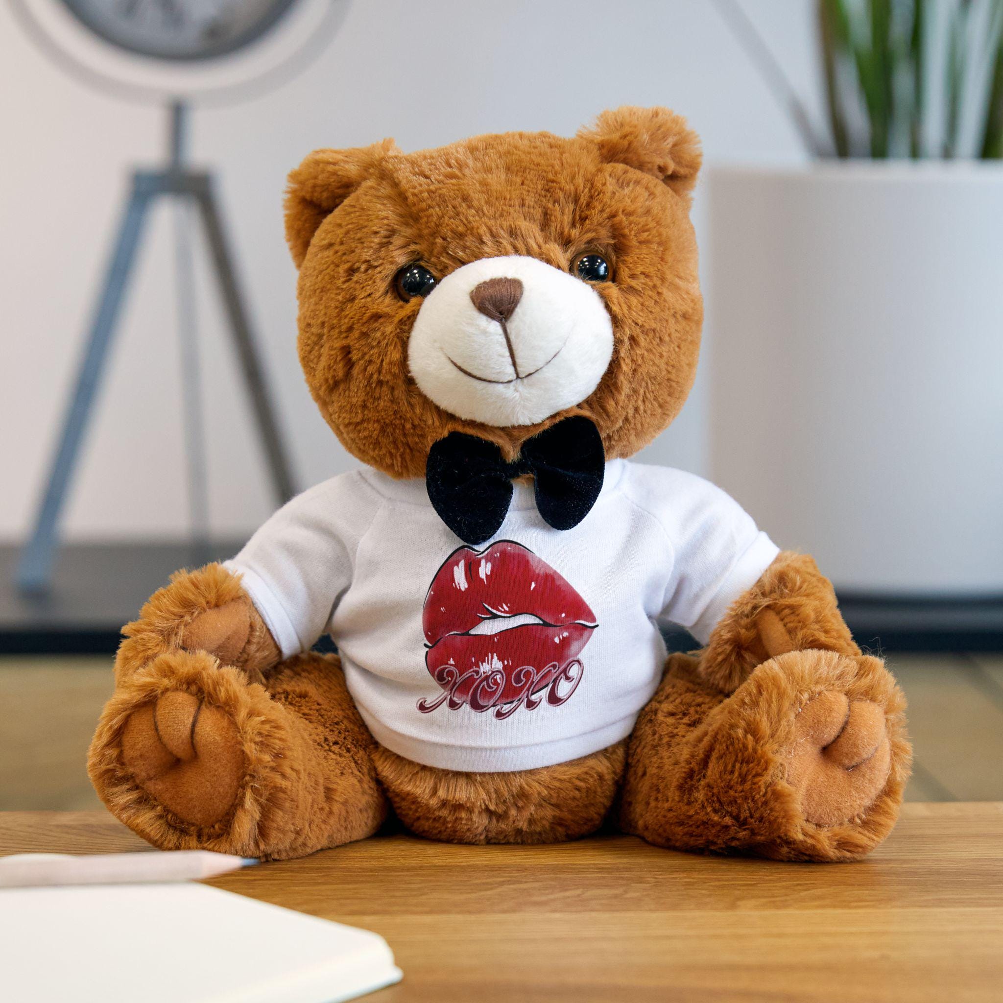 Introducing an adorable Teddy Bear, perfect for snuggling and gifting! This charming bear features soft light brown fur and round black eyes, radiating warmth and comfort. With a removable white t-shirt ready for personal decoration and a cute black bow tie, it makes an excellent companion for kids and a unique gift for special occasions. Imagine gifting this sweet bear for birthdays, Valentine's Day, or even as a comforting surprise for a friend in need. Whether displayed on a shelf or hugged tightly at bedtime, this Teddy Bear brings joy and companionship into any home, making it a must-have for teddy bear lovers of all ages!