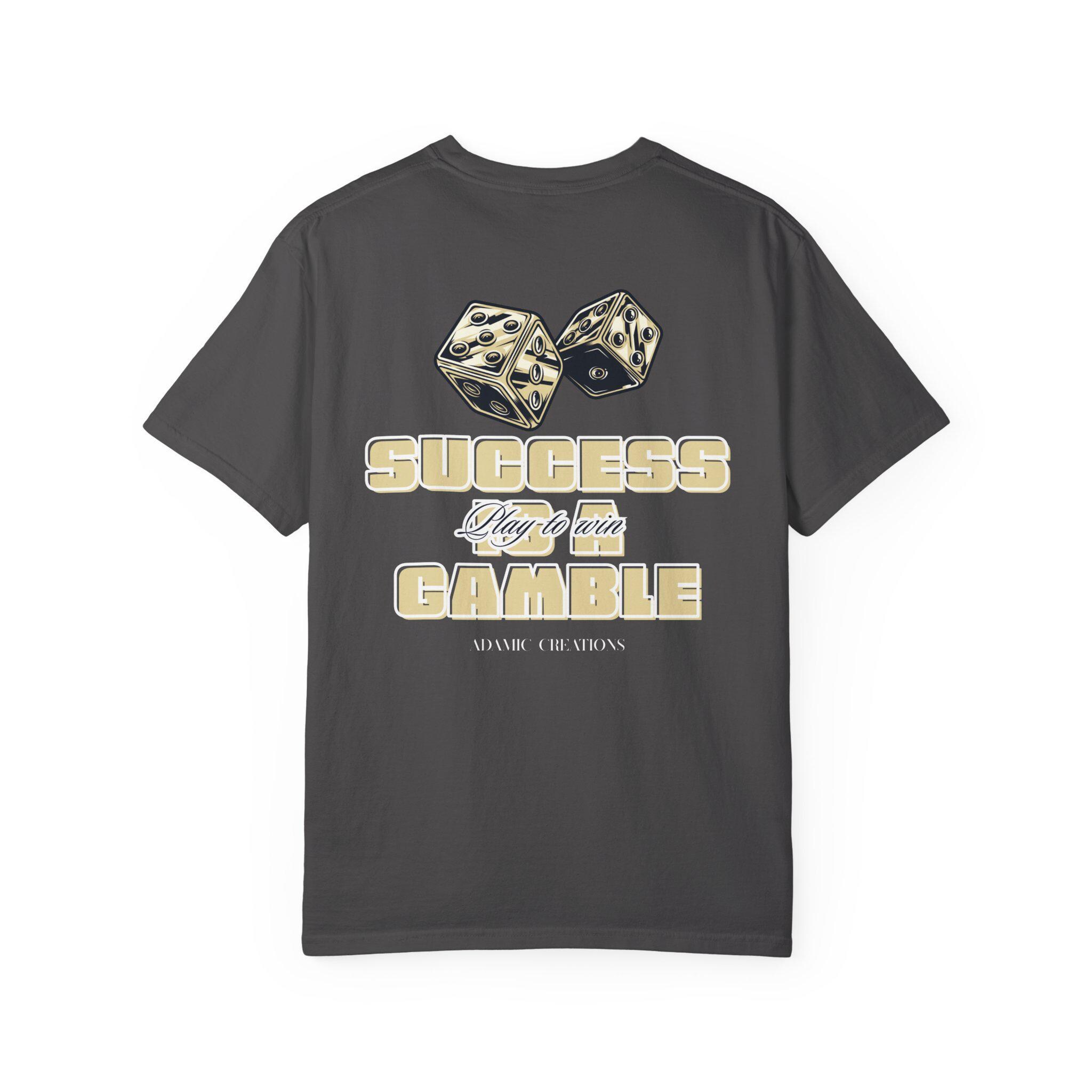 The "Success is a Gamble Tee" is a unisex garment-dyed t-shirt that exudes a laid-back and stylish vibe. Perfect for casual outings or lounging at home, this tee is relevant to those who appreciate comfortable and versatile clothing. Ideal for gifting during birthdays, holidays, or as a motivational present.