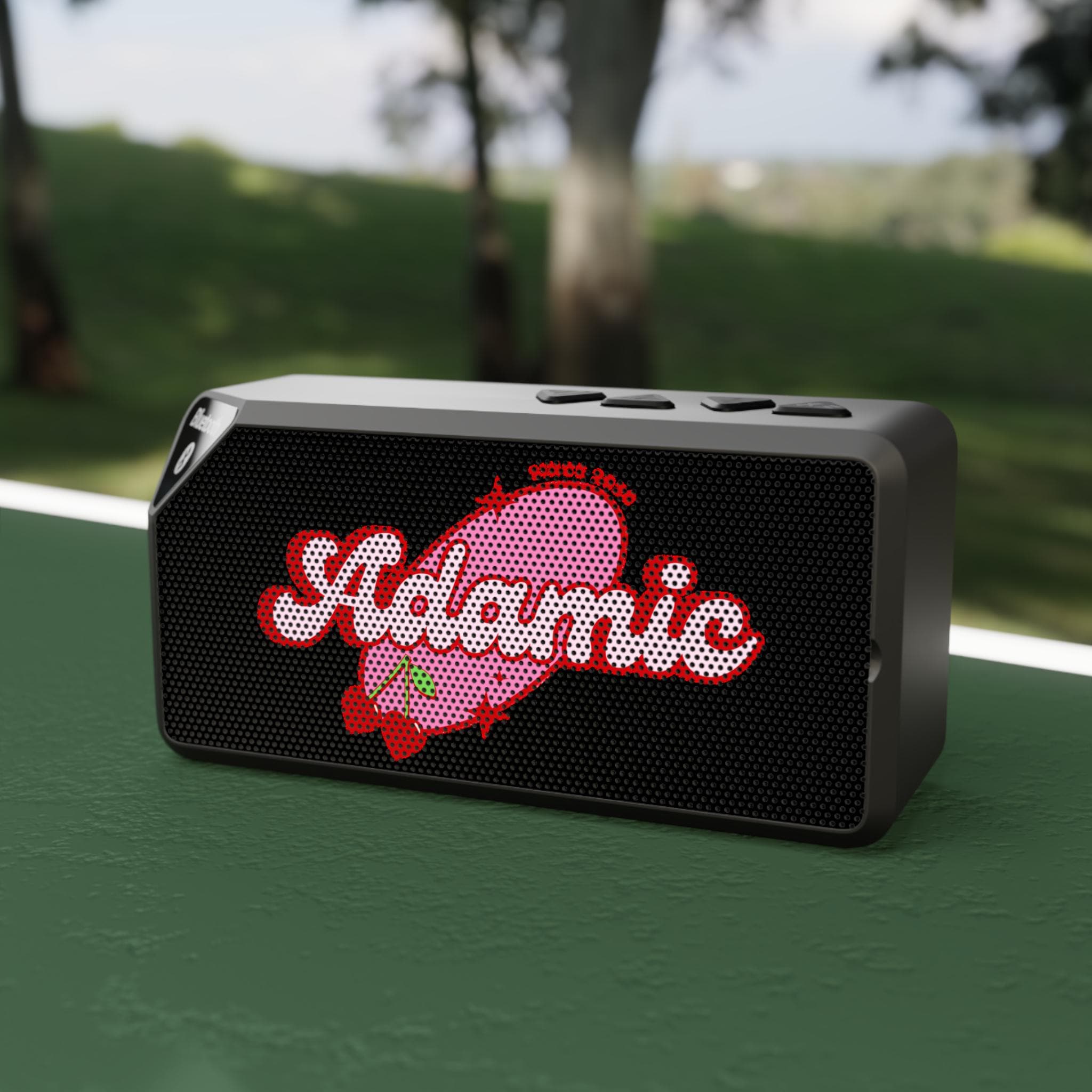 Add a pop of color to your tech collection with this cherry pop sticker Bluetooth Speaker. Enjoy clear sound quality and a fun design that will brighten up any room. Perfect for music lovers looking for a compact and portable speaker.