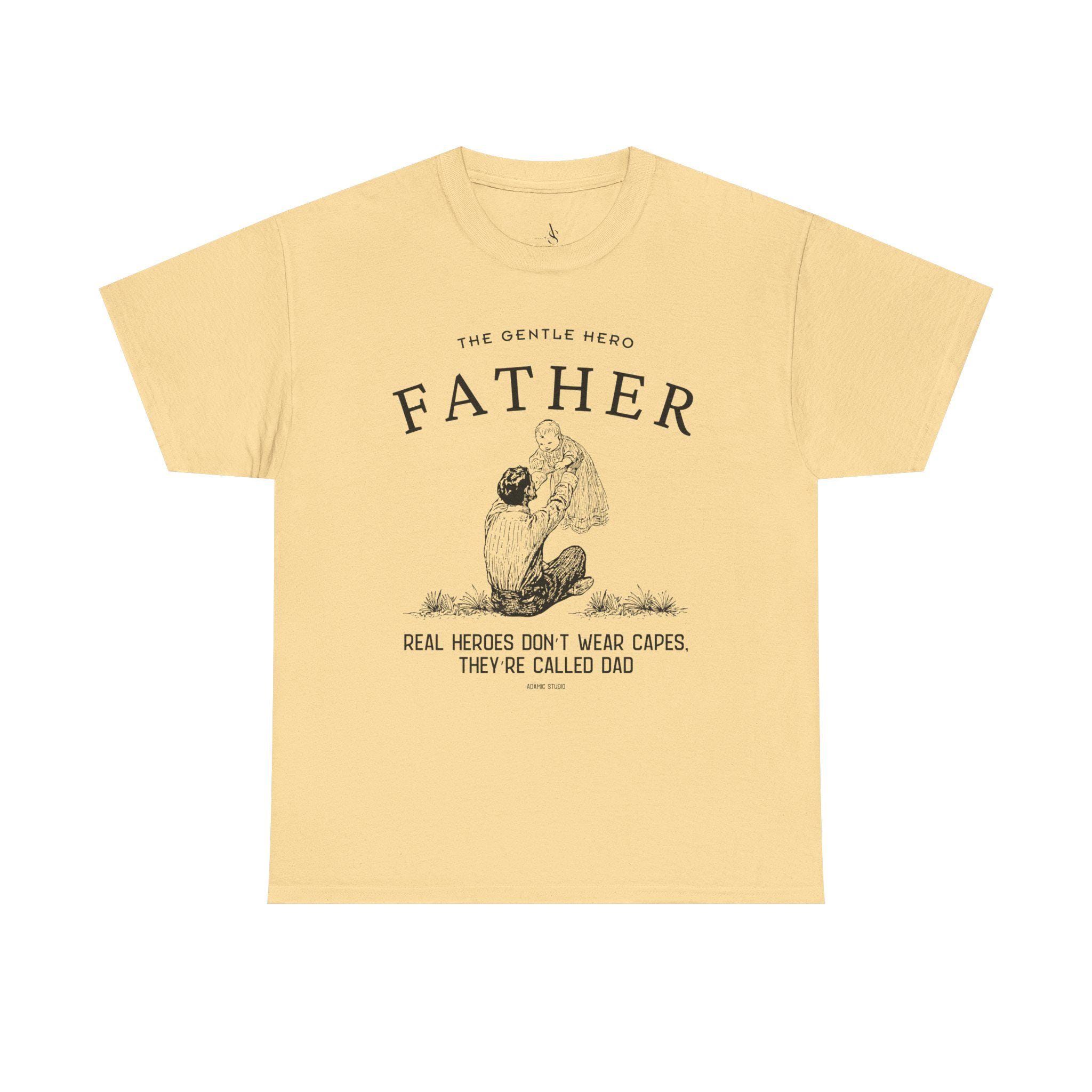 Introducing our Unisex Heavy Cotton Tee, a perfect blend of comfort and style that effortlessly enhances your casual wardrobe. This tee radiates a laid-back vibe, ideal for lounging at home or stepping out with friends. Its classic fit and crew neckline ensure it can be dressed up or down, making it versatile for any occasion—from family gatherings to relaxed weekend outings. The design, with its heartfelt message, appeals particularly to fathers, making it a thoughtful gift for Father's Day, birthdays, or just to show appreciation for the dads in your life. Its easy-to-wear nature makes it suitable for other celebratory moments, such as Christmas or any casual get-together. This tee is designed for individuals who value comfort and a meaningful connection to their attire. Product features - Shoulder tape stabilizes seams for durability. - Seamless body design reduces fabric waste and enhances aesthetics. - Ribbed collar retains shape and offers elasticity. - Medium fabric thickness for year-round comfort and sustainability. - Tear-away label ensures no irritation during wear. Care instructions - Non-chlorine: bleach as needed - Do not iron - Do not dryclean - Machine wash: cold (max 30C or 90F) - Tumble dry: low heat