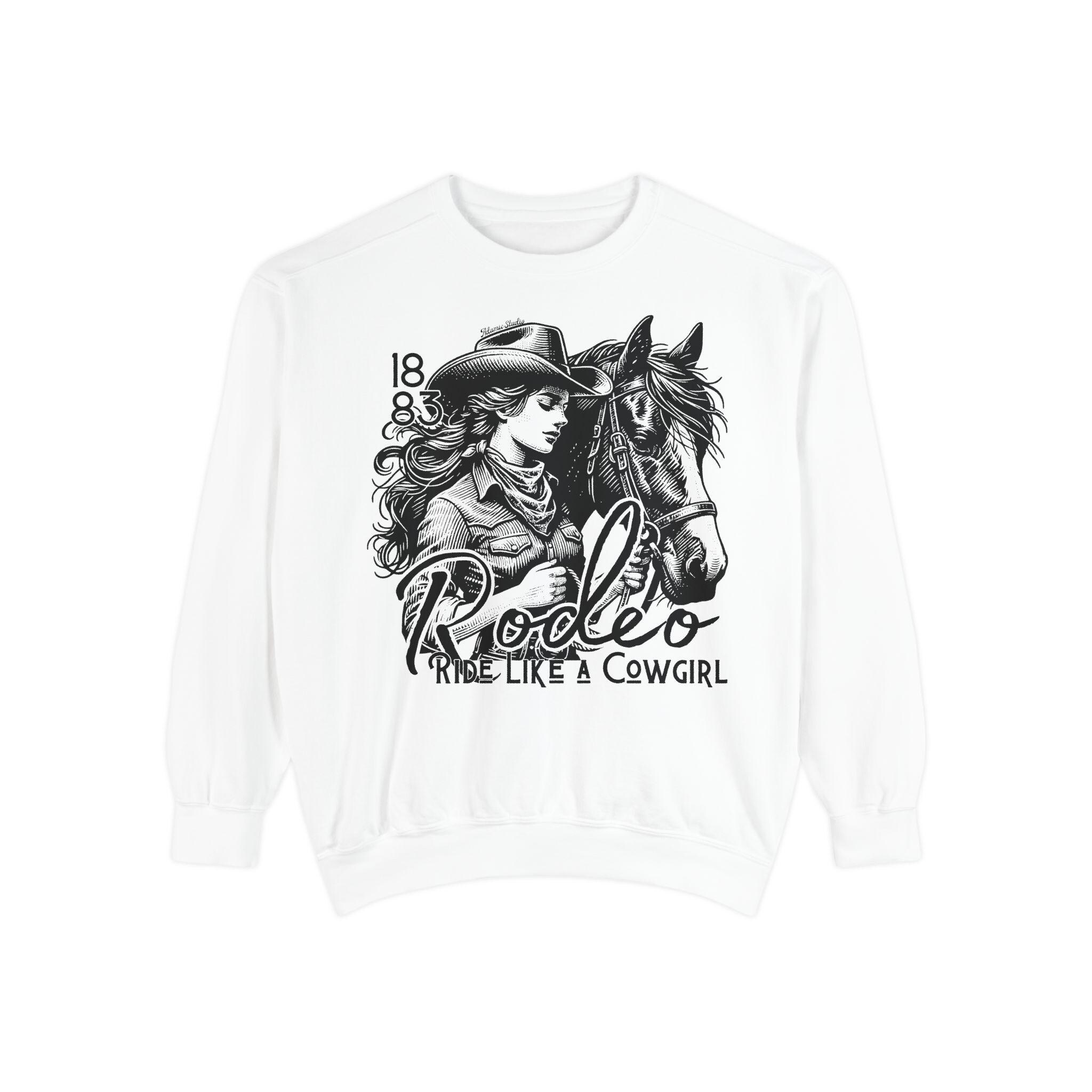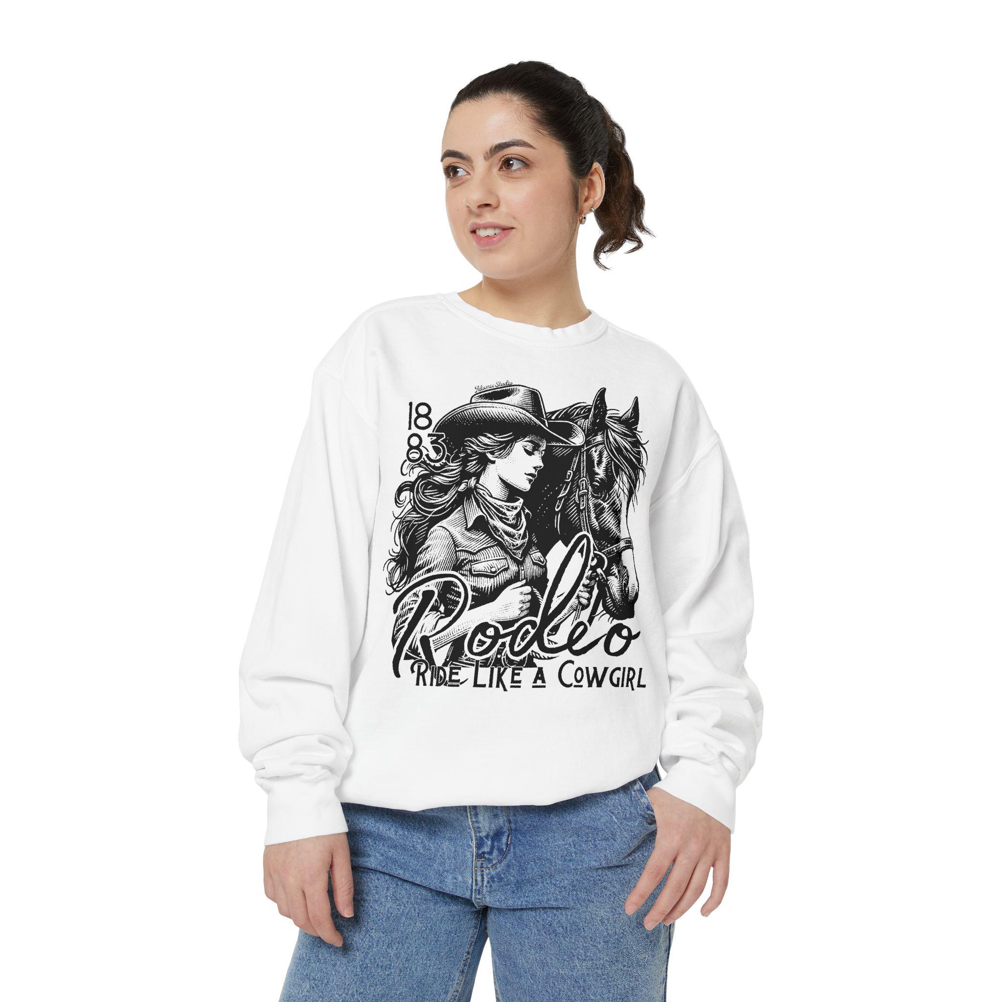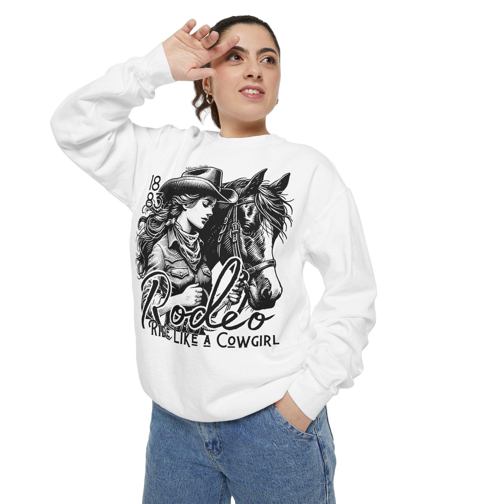 Elevate your casual wardrobe with this chic unisex garment-dyed sweatshirt. The distressed yet stylish design captures the essence of cowboy culture, making it perfect for rodeo lovers and enthusiasts. Soft to the touch, this sweatshirt wraps you in comfort while providing a relaxed fit that’s ideal for all-day wear. Whether lounging at home, attending a festival, or enjoying a day out with friends, this sweatshirt brings together effortless style and cozy warmth. Great for occasions like rodeo events, country fairs, or just adding a rustic flair to your everyday outfit, this piece is a must-have for those who cherish the cowboy spirit. Perfect as a gift for fellow cowgirls and country fans during holidays like Christmas, birthdays, or any celebratory gatherings!