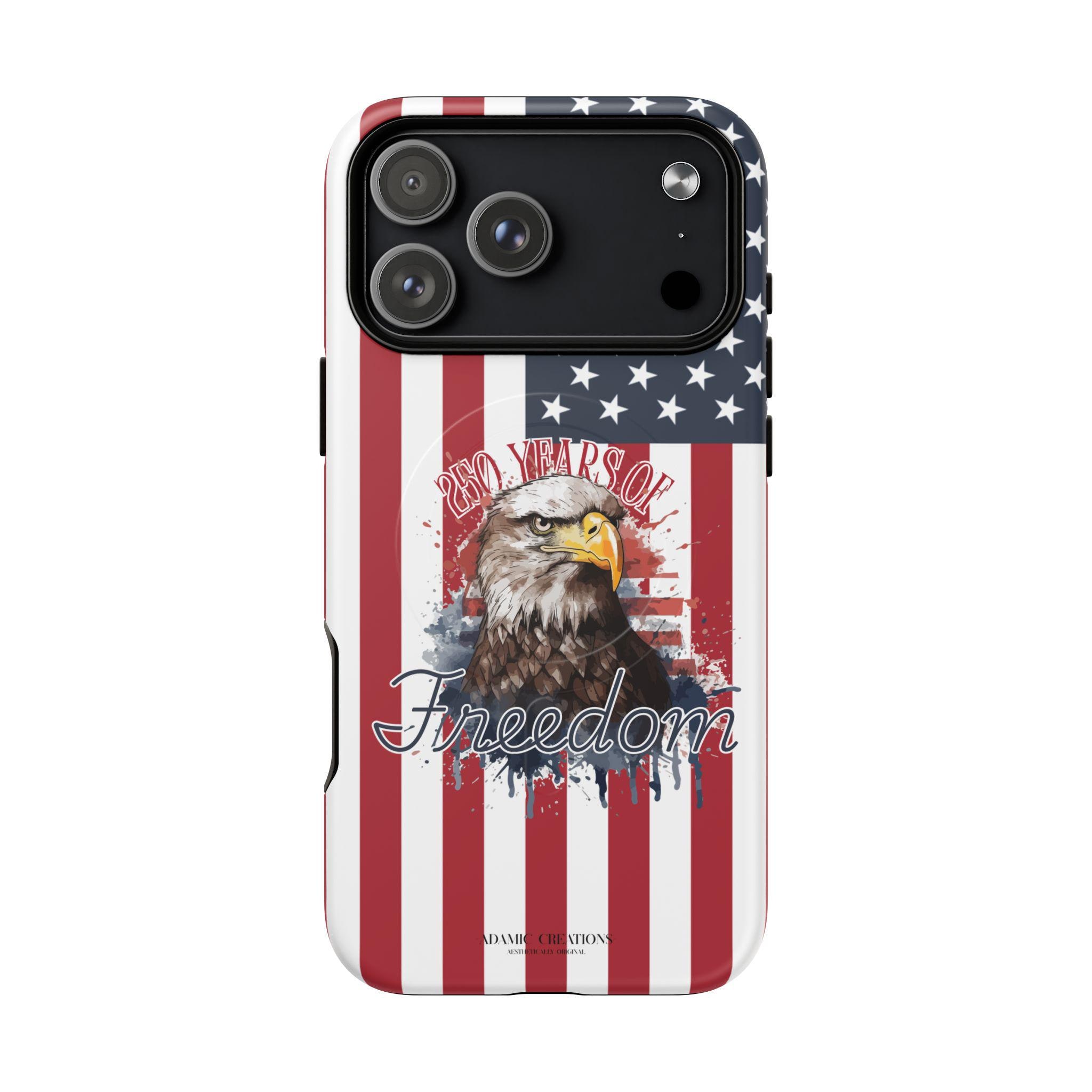 Celebrate the 250-year anniversary of the United States of America with this tough and durable phone case. Perfect for adults looking to show their patriotism and love for their country. Ideal for Independence Day, Memorial Day, and Veterans Day.