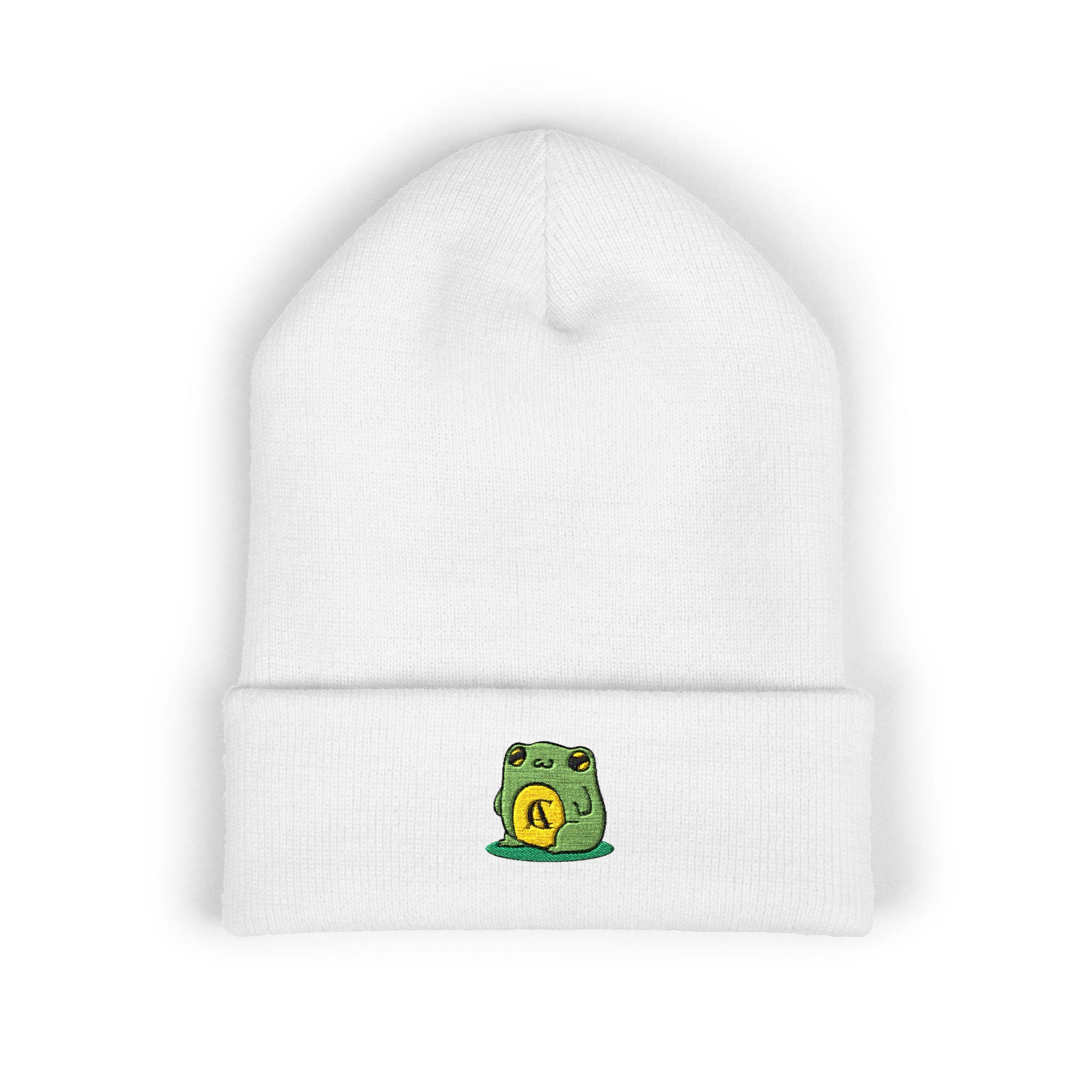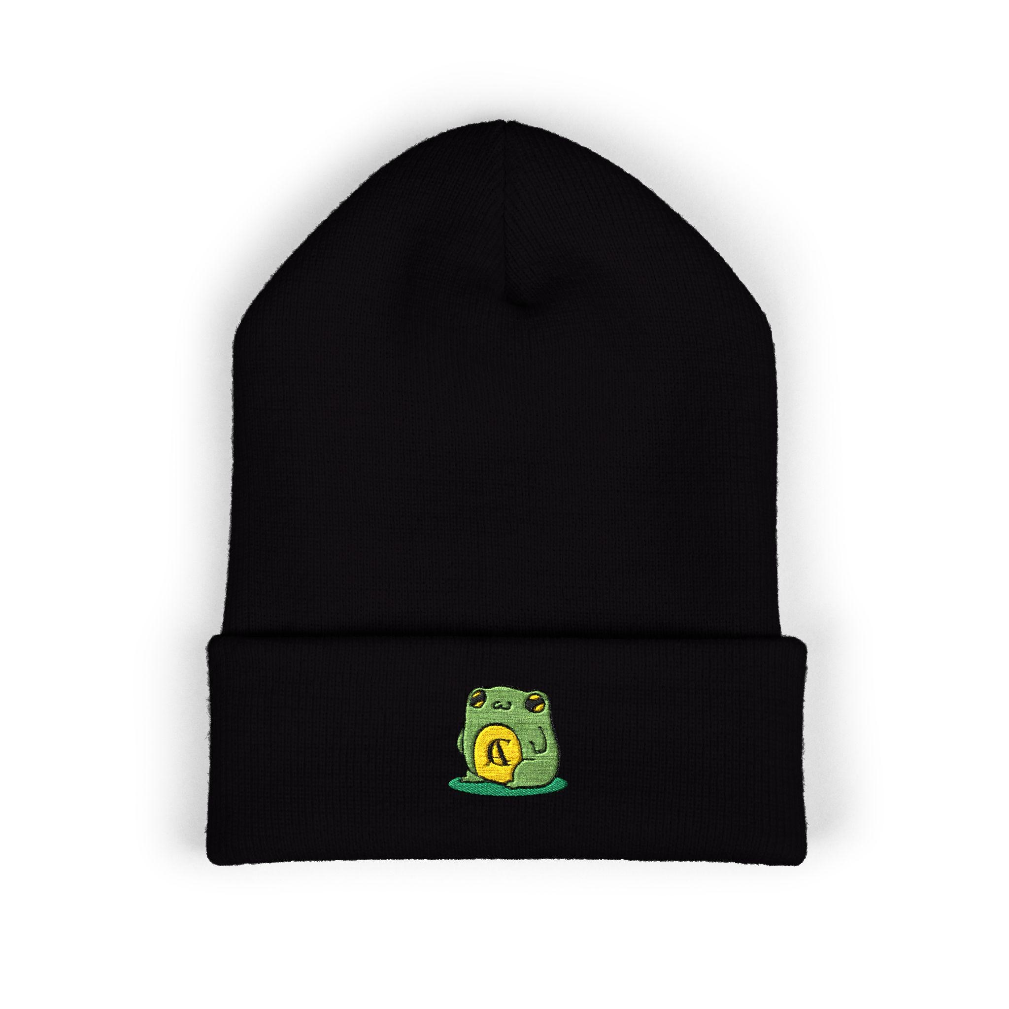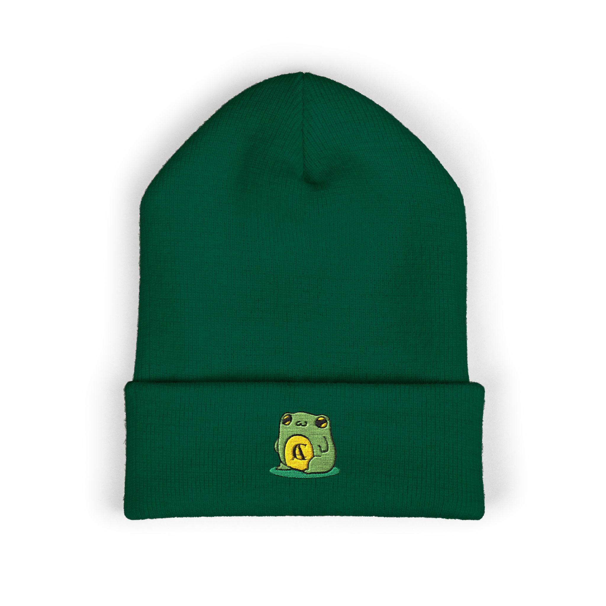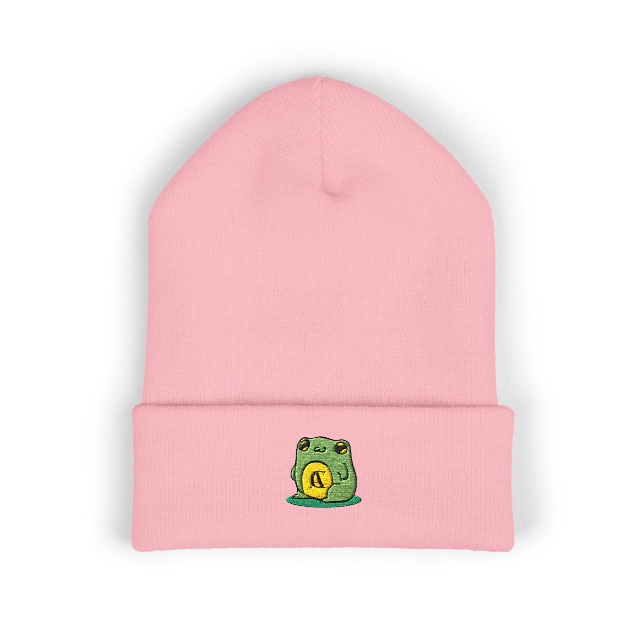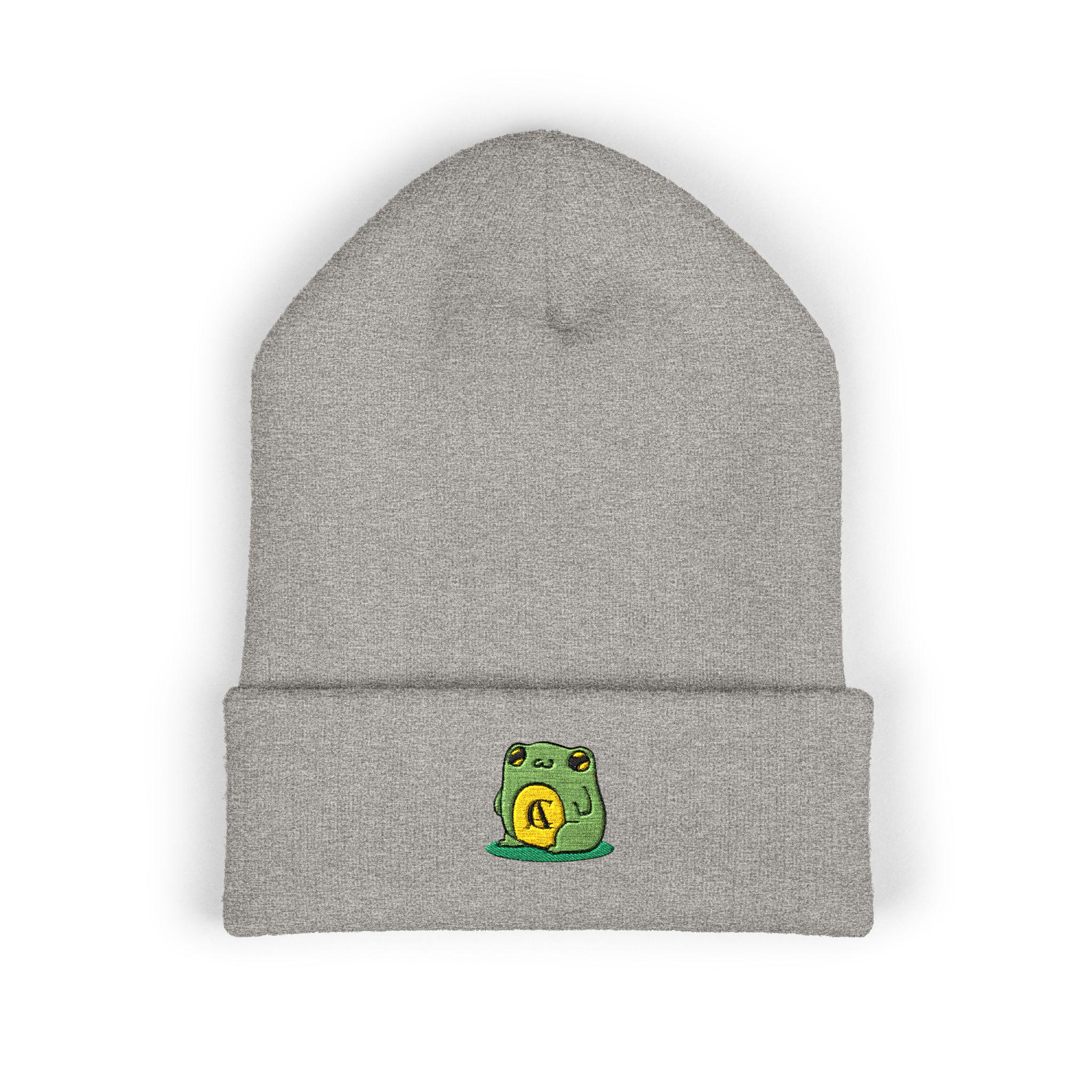 This cuffed beanie brings a small, playful touch to everyday winter wear. Soft turbo acrylic shapes a warm 12" cuff that sits snugly and flatters every head. The tiny embroidered frog patch on the cuff feels personal—like a small lucky token stitched into your daily outfit. Wear it on blustery commutes, late-night walks, or while settling in with a book. It layers easily under a hood or pairs with a denim jacket and chunky scarf for a relaxed, intentional look. Breathable, hypoallergenic fabric keeps you comfortable through long days outdoors or cozy nights indoors, while the low-profile embroidery adds character without shouting for attention.