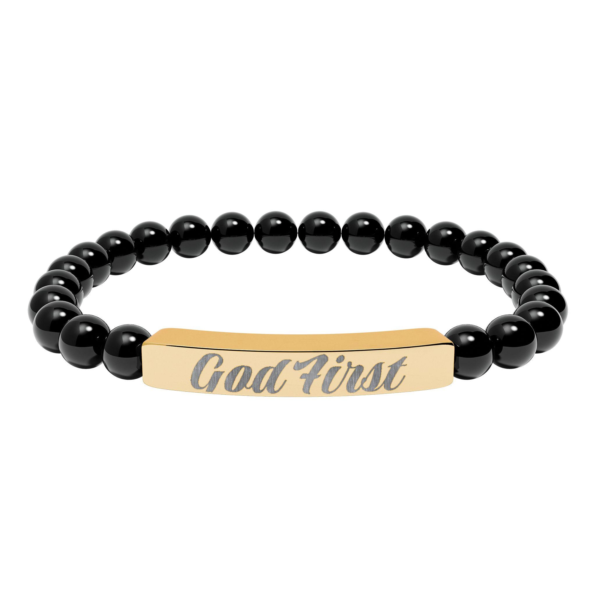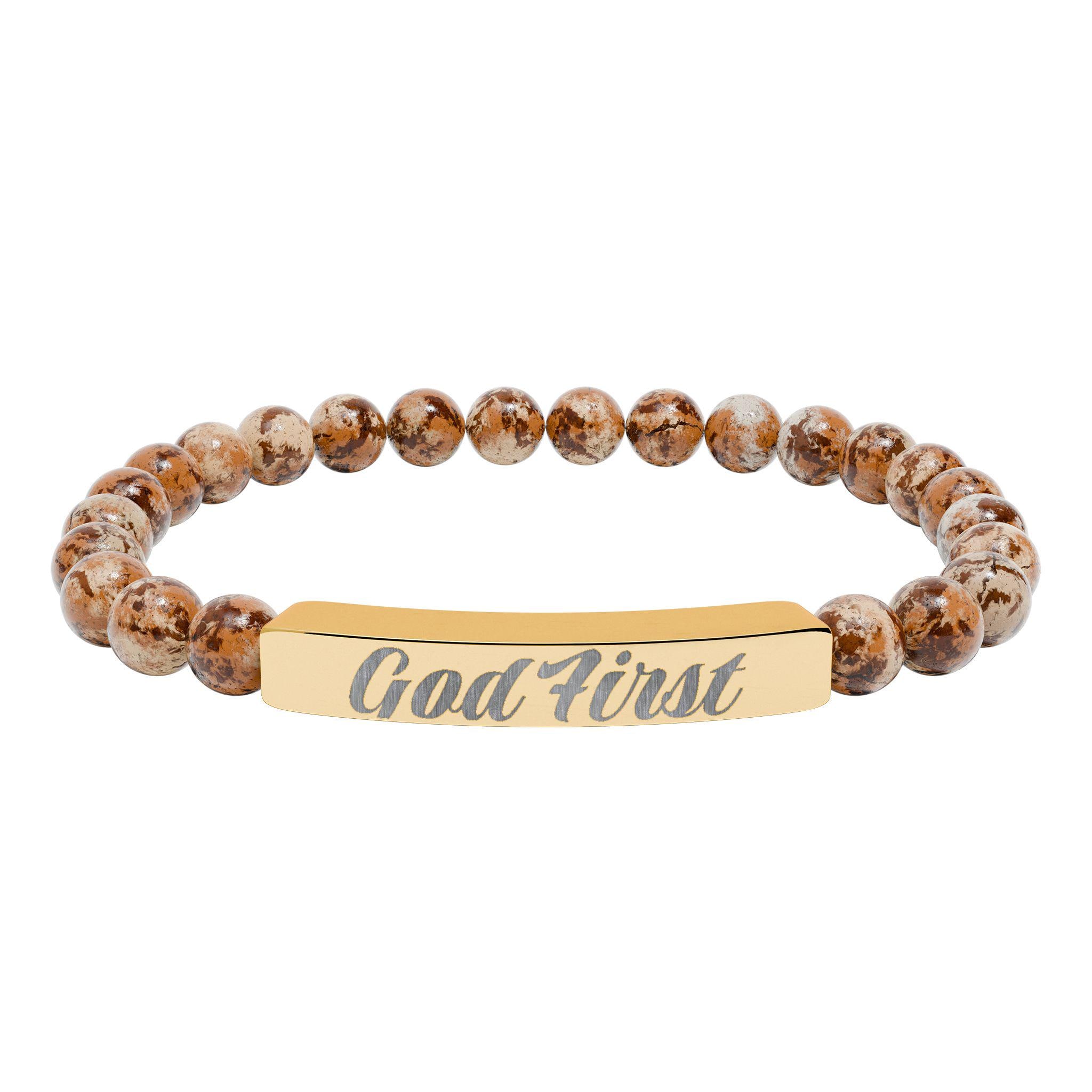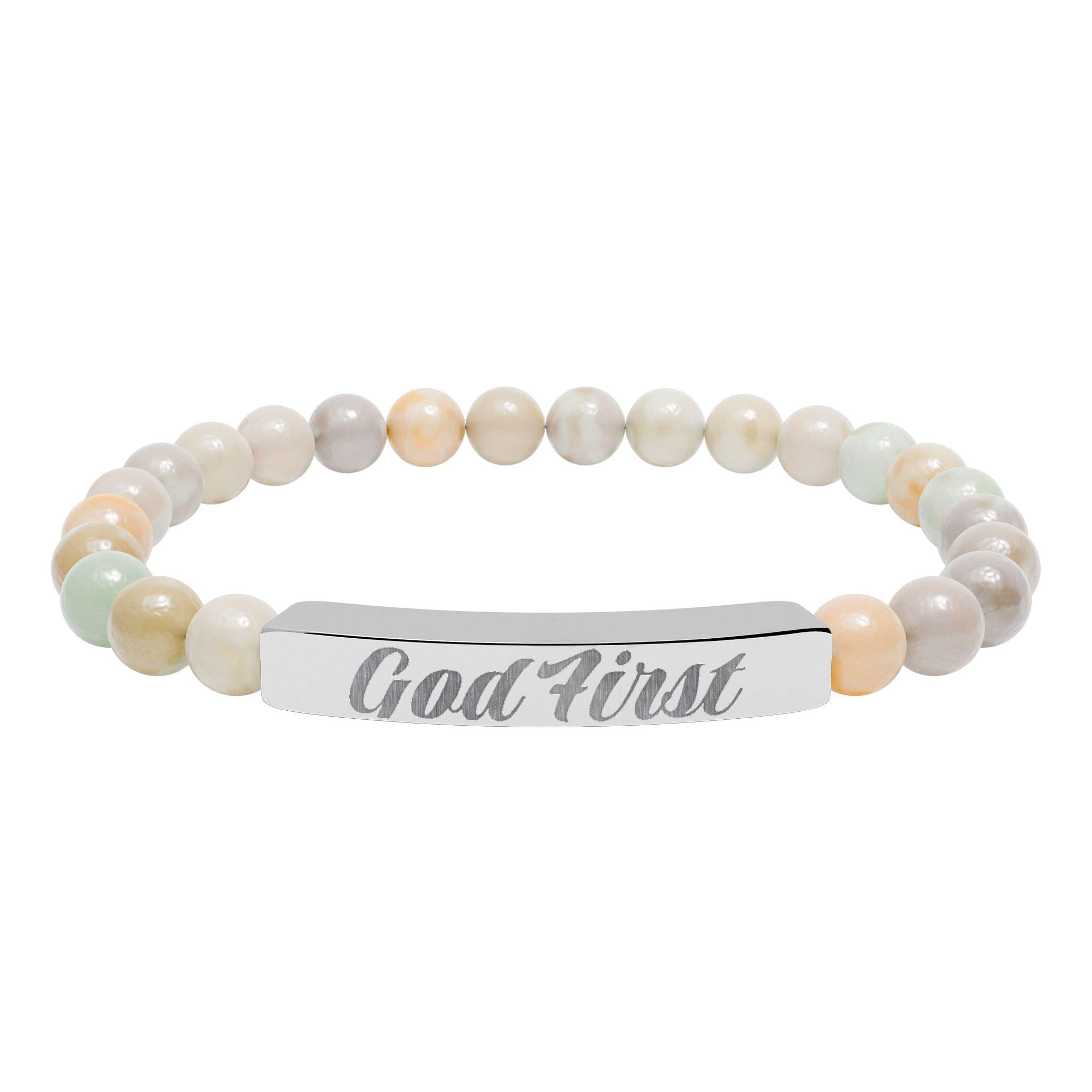 God First Natural Stone Stretch Bar Bracelet | Engraved Beaded Bracelet