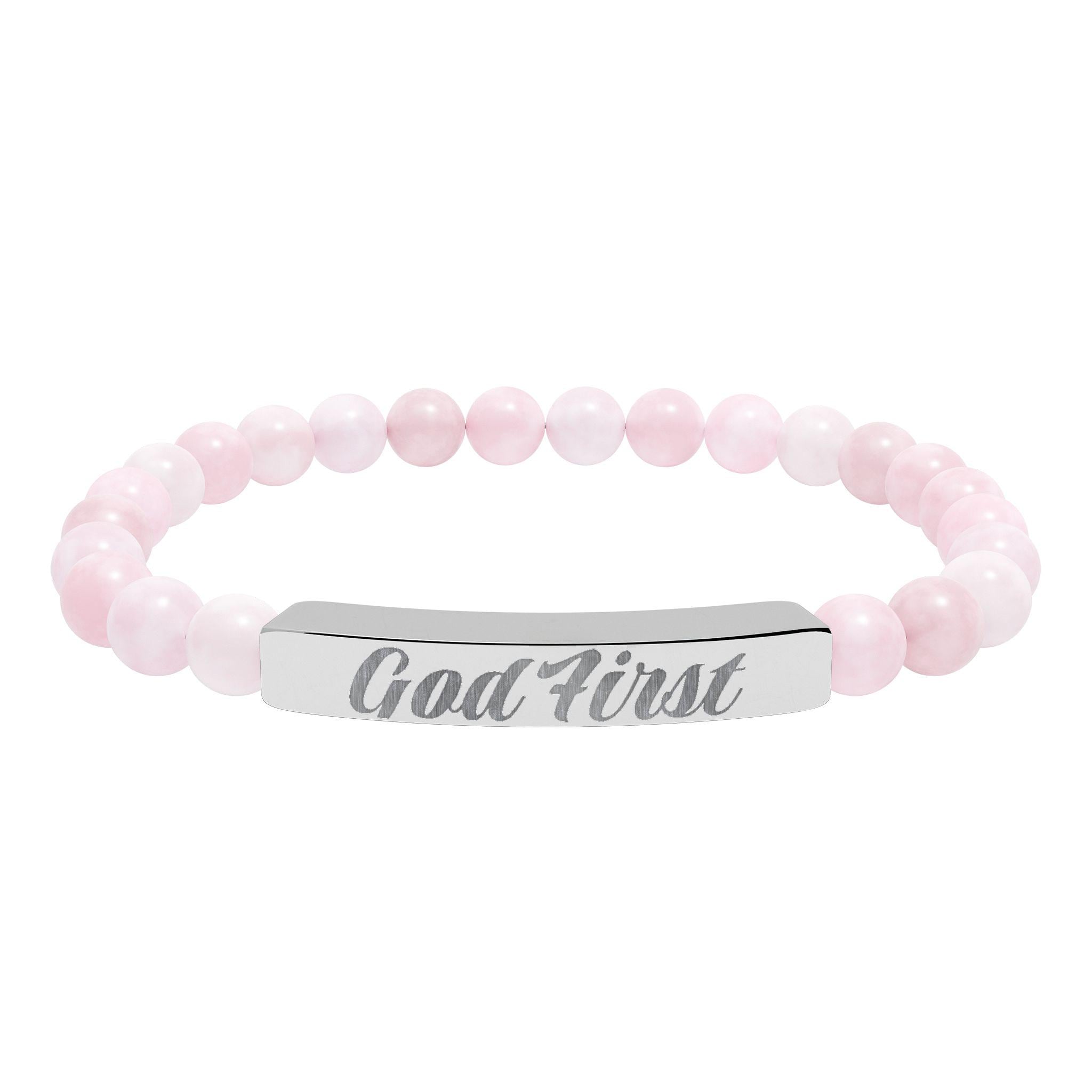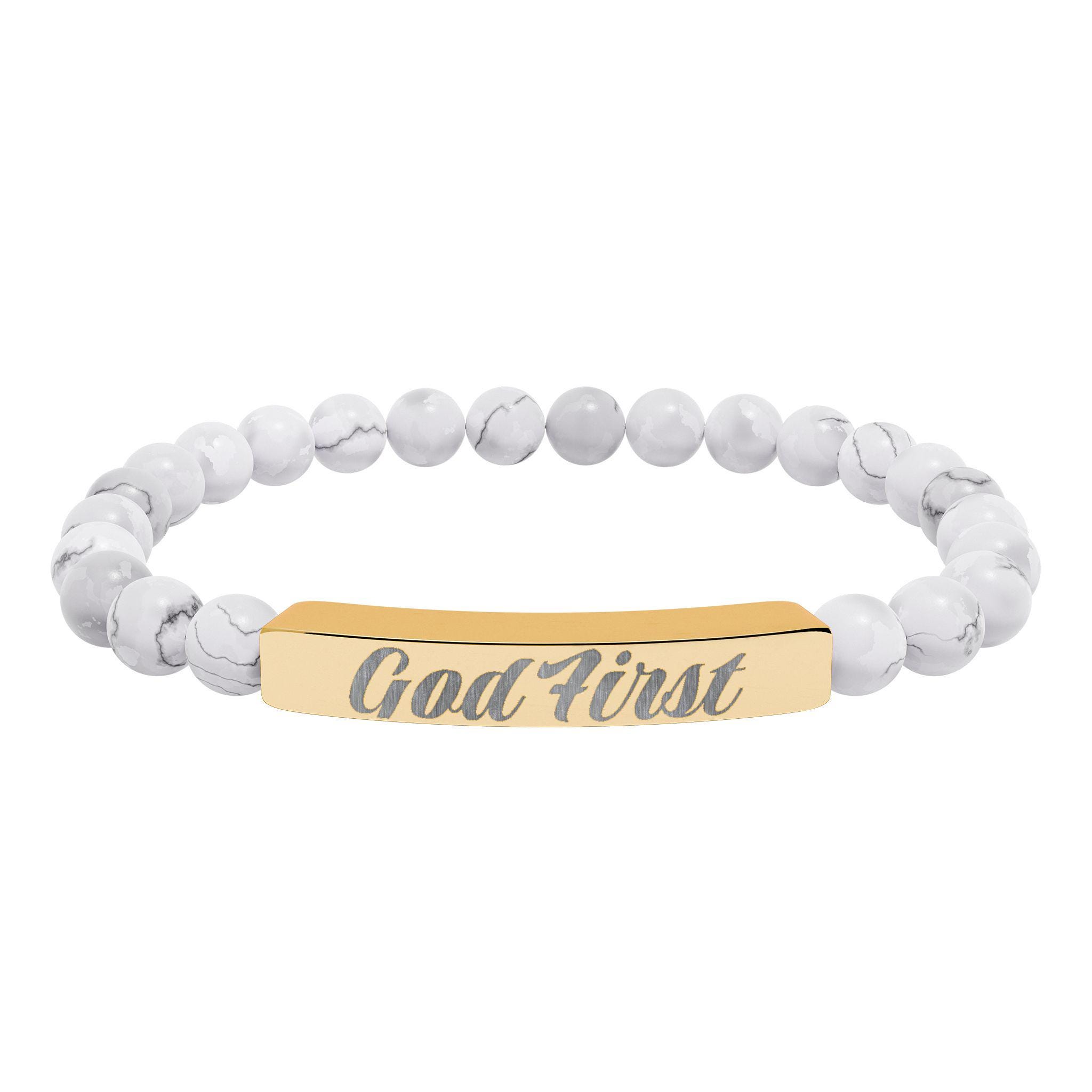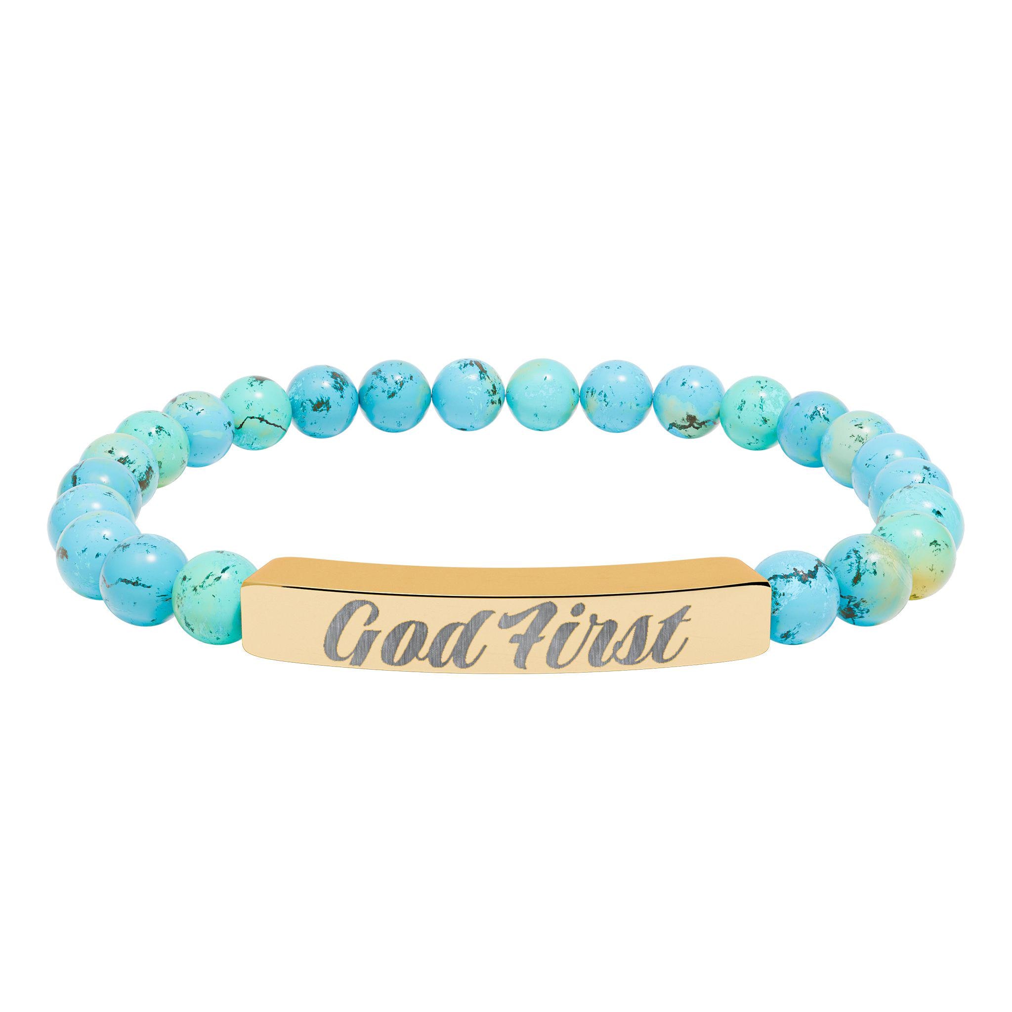God First Natural Stone Stretch Bar Bracelet | Engraved Beaded Bracelet