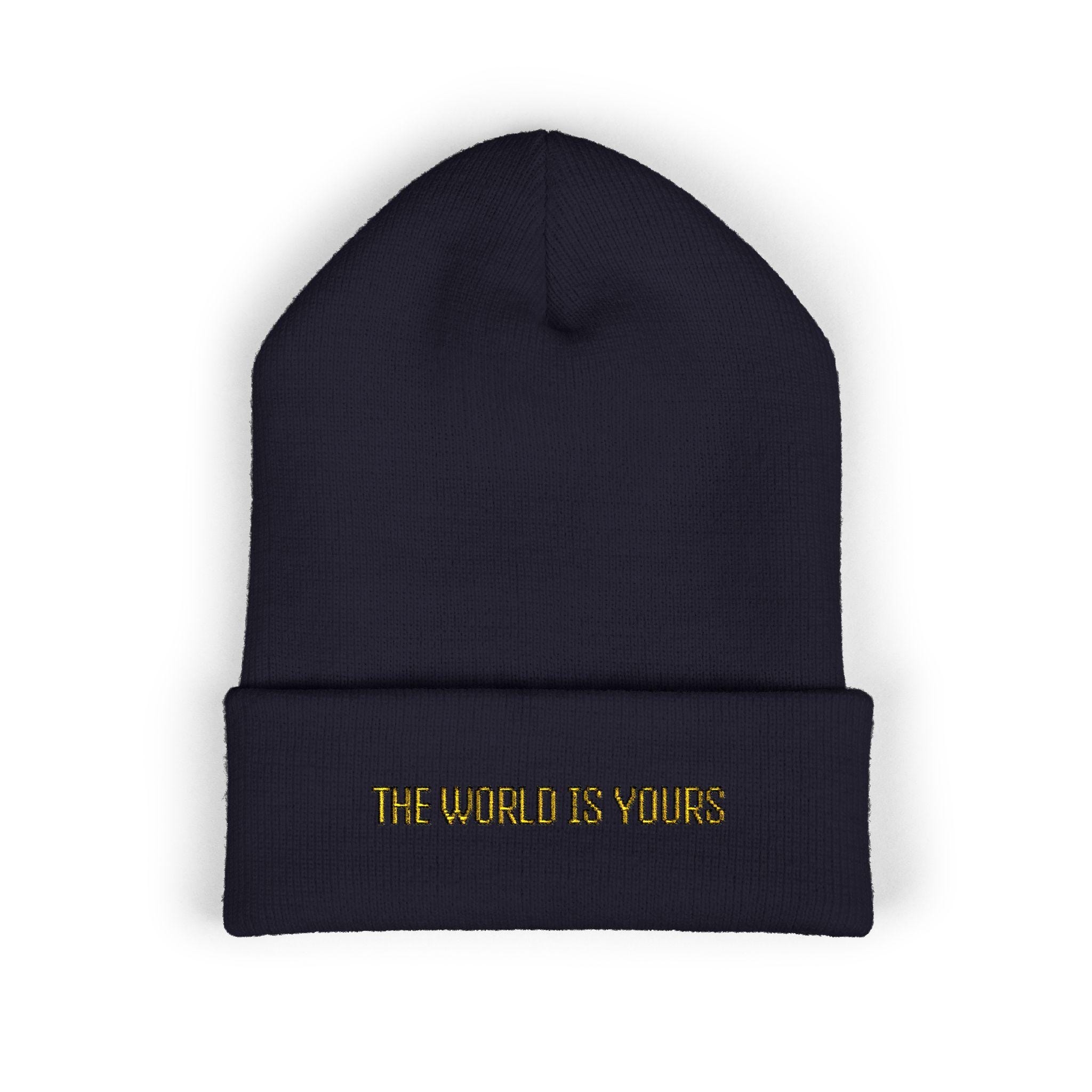 A clean, cuffed beanie embroidered with a compact, confident message. The thick 12" cuff gives it structured warmth while keeping the embroidered text low-profile and grounded at the forehead. Knit from 100% turbo acrylic that’s soft, hypoallergenic, and built to hold shape, this beanie wears like a classic city staple — neutral enough to layer with outerwear, bold enough to make a quiet statement. It slips on easily and stretches to fit most adult heads, offering dependable warmth on rushed mornings, late-night walks, or when you want a simple finishing touch that reads intentional rather than loud.