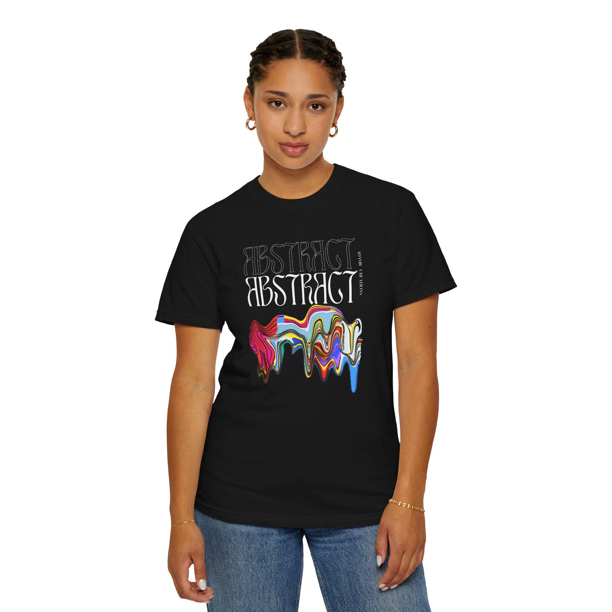 This relaxed-fit garment-dyed tee carries an art-studio energy — a soft, lived-in black canvas with a vivid, melting abstract print and vintage-inspired lettering. It feels like a favorite you’ve worn in and out of shows and galleries: heavy enough to hold shape, cotton-soft against the skin, and rich with color that pops without stiffness. Wear it to late-night art walks, creative meetups, or when you want a quiet statement that reads as purposeful and personal. The tubular knit and sewn-in label keep the silhouette clean while the garment-dye gives the shirt a supple, muted tone that ages beautifully over time.