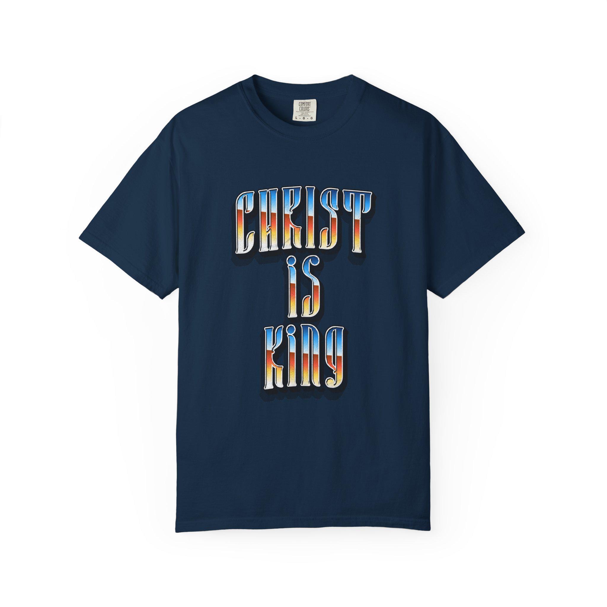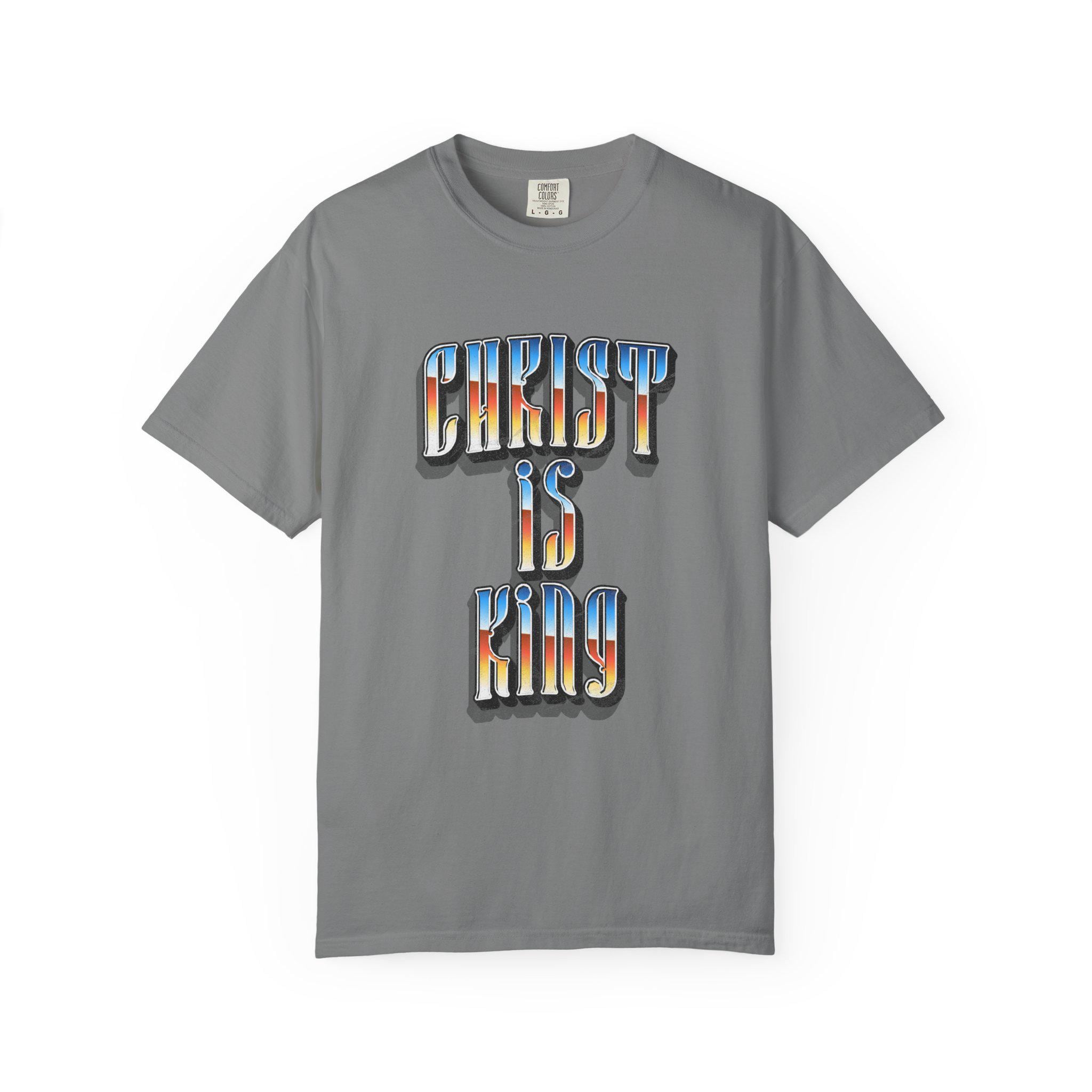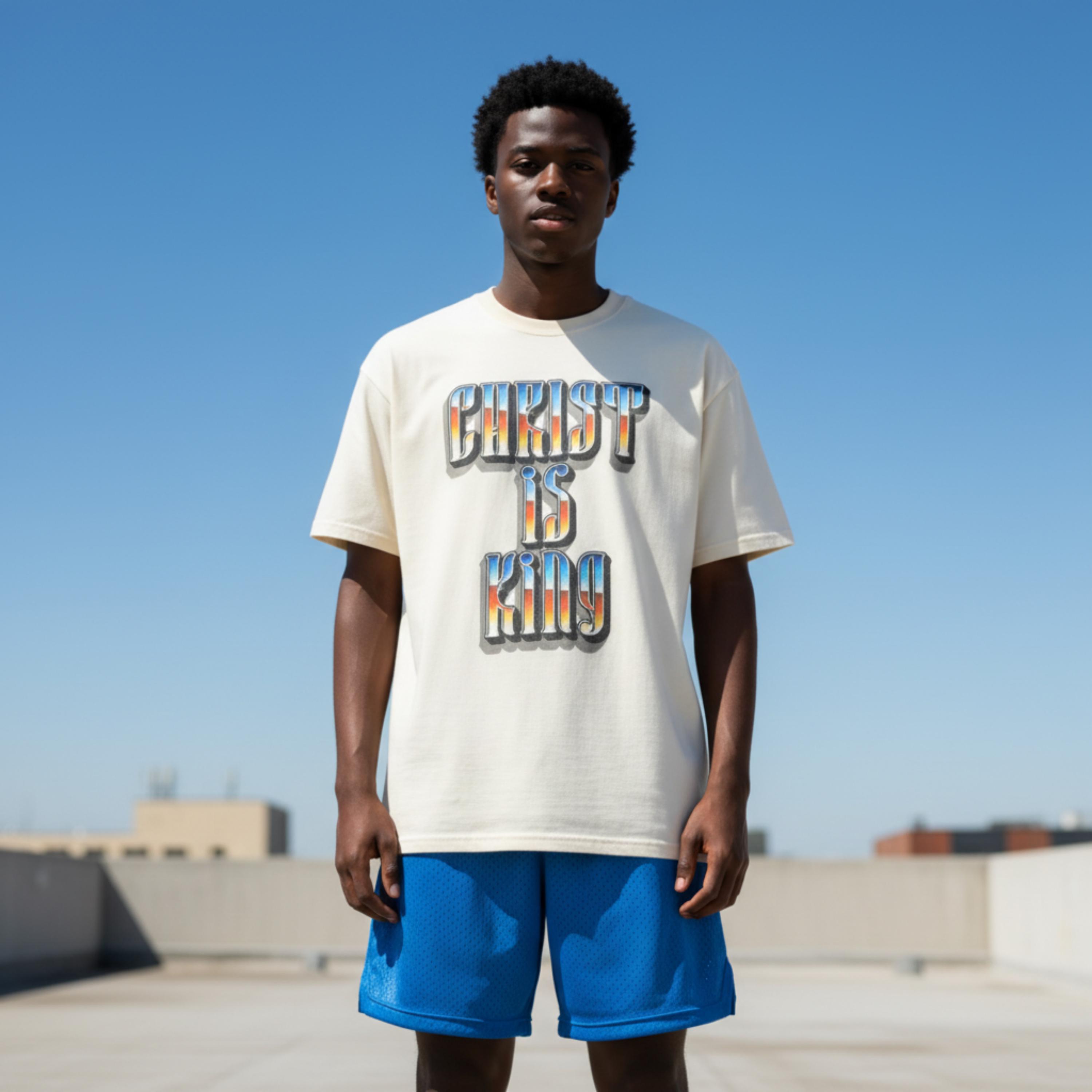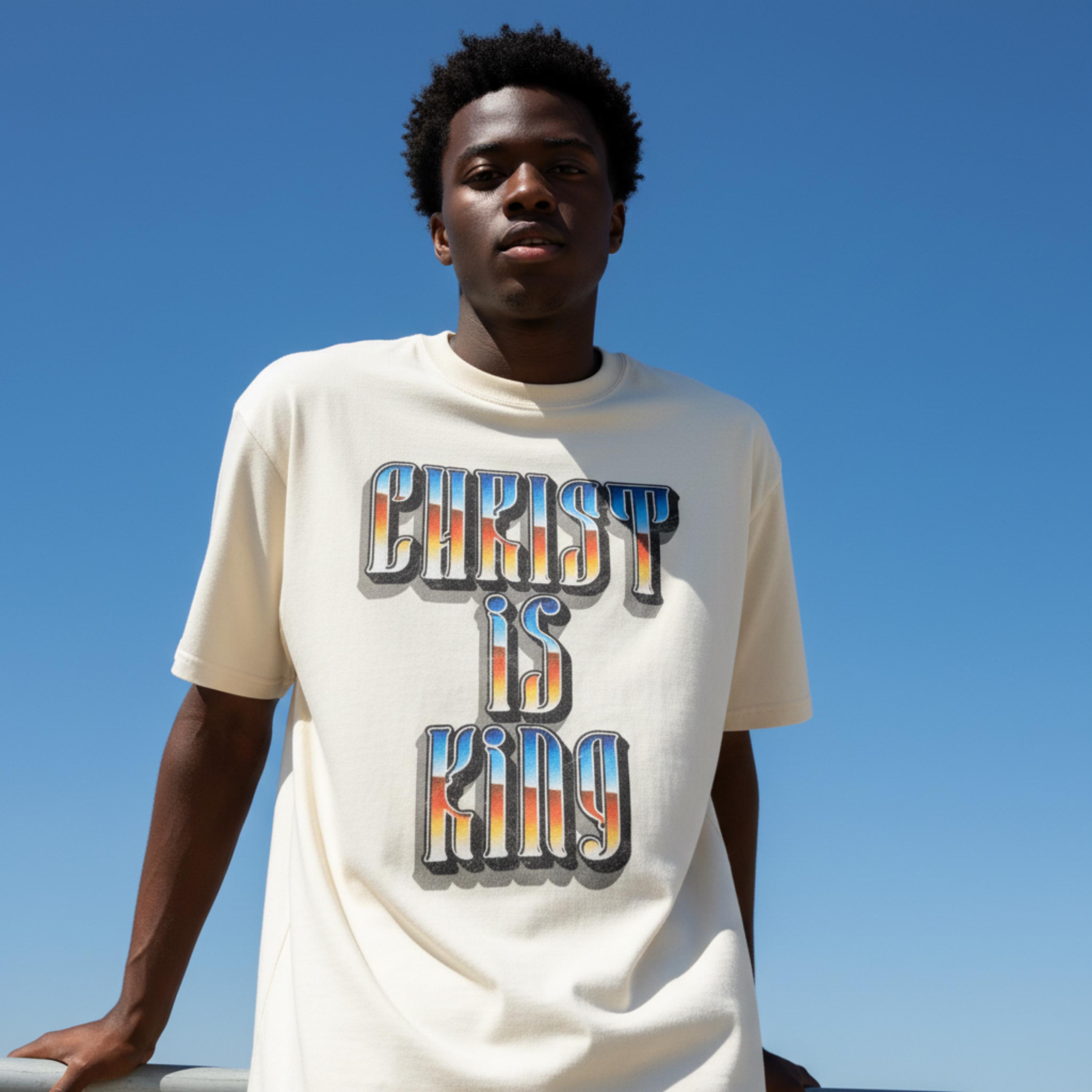 This “Christ Is King” graphic tee is a bold declaration of truth, power, and devotion. Designed with a vintage-inspired gradient and strong gothic lettering, this piece blends classic Christian conviction with modern streetwear energy.