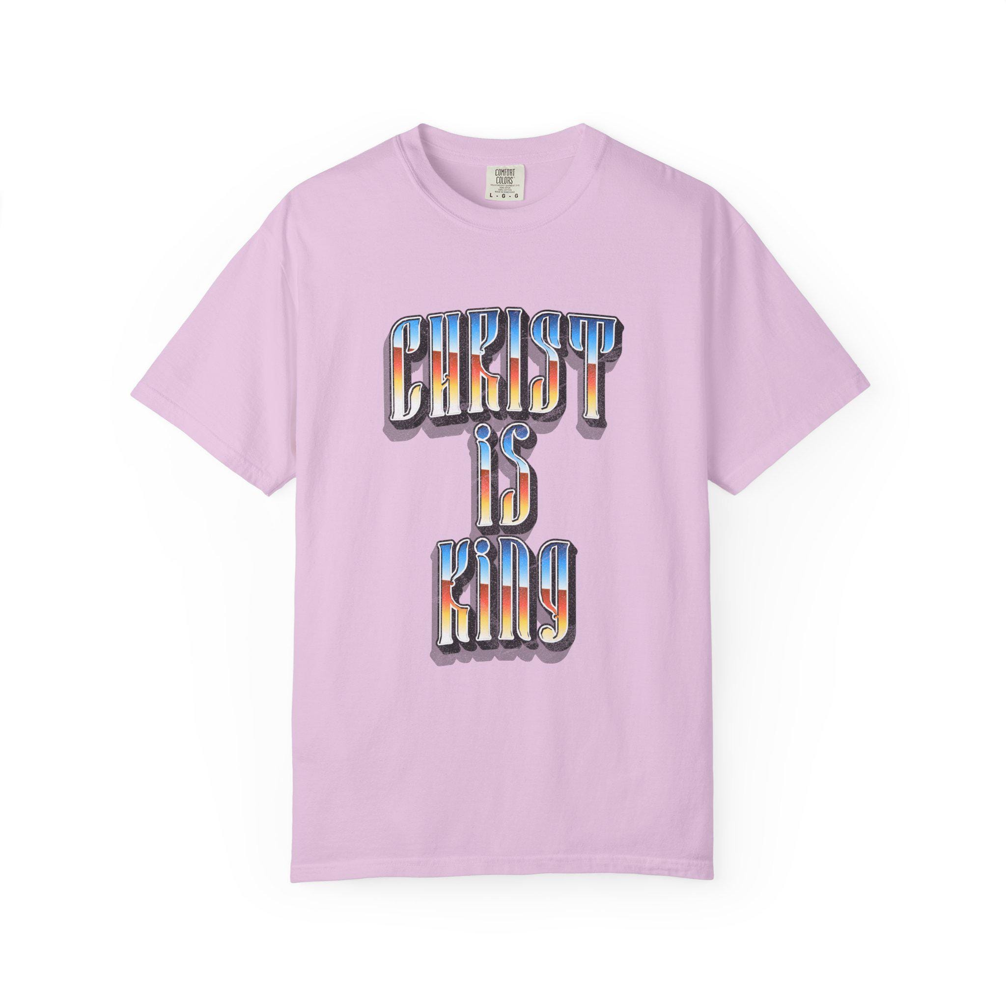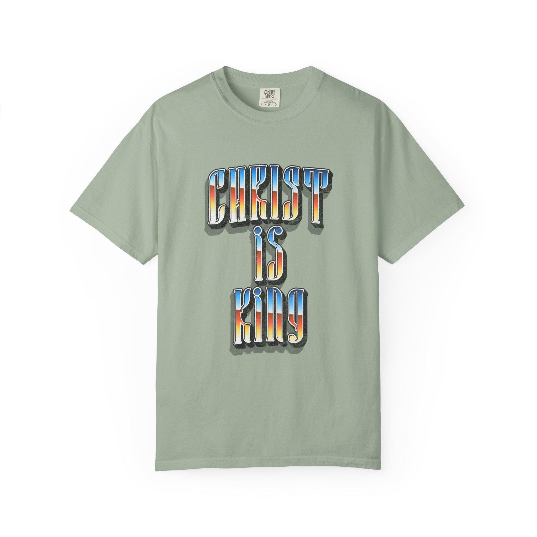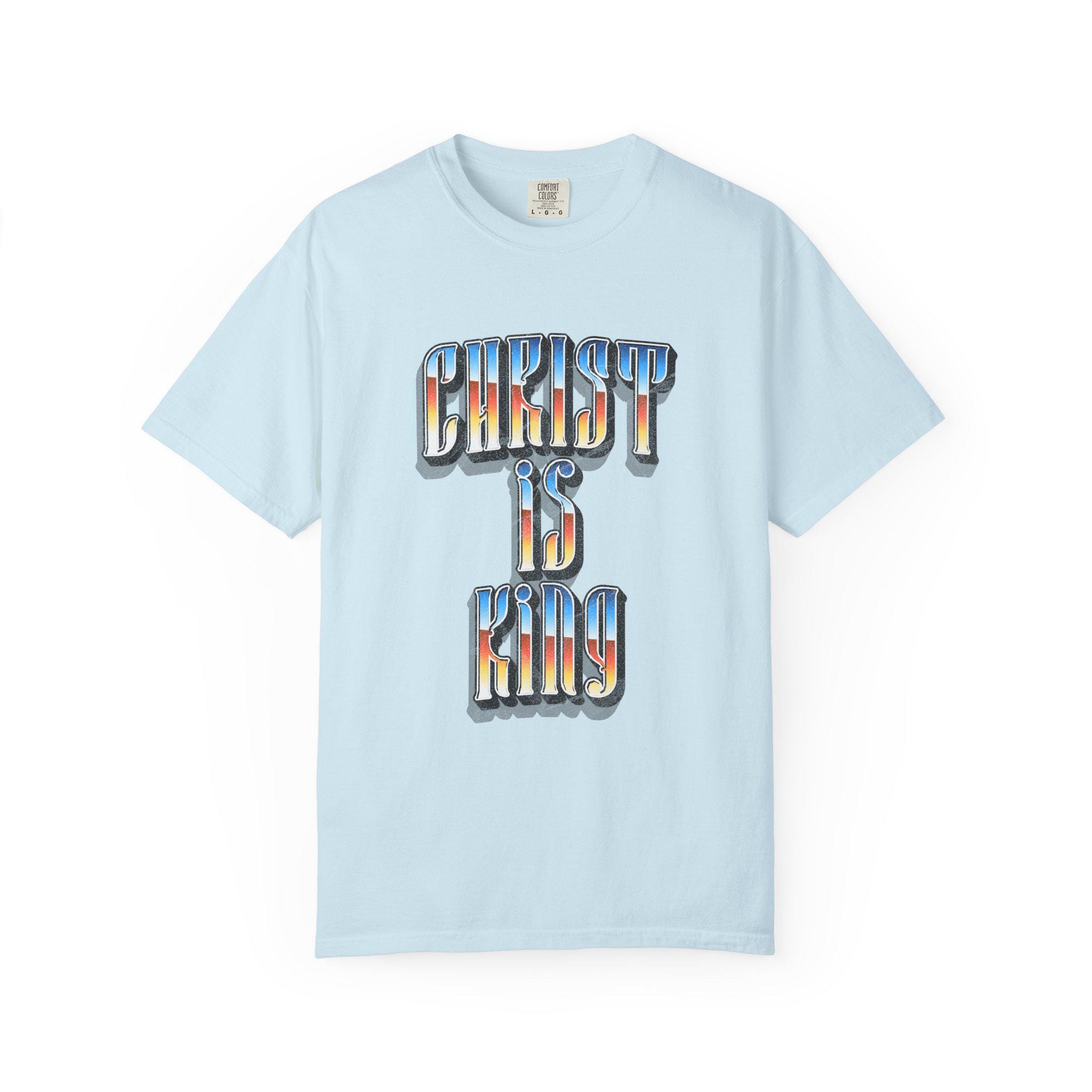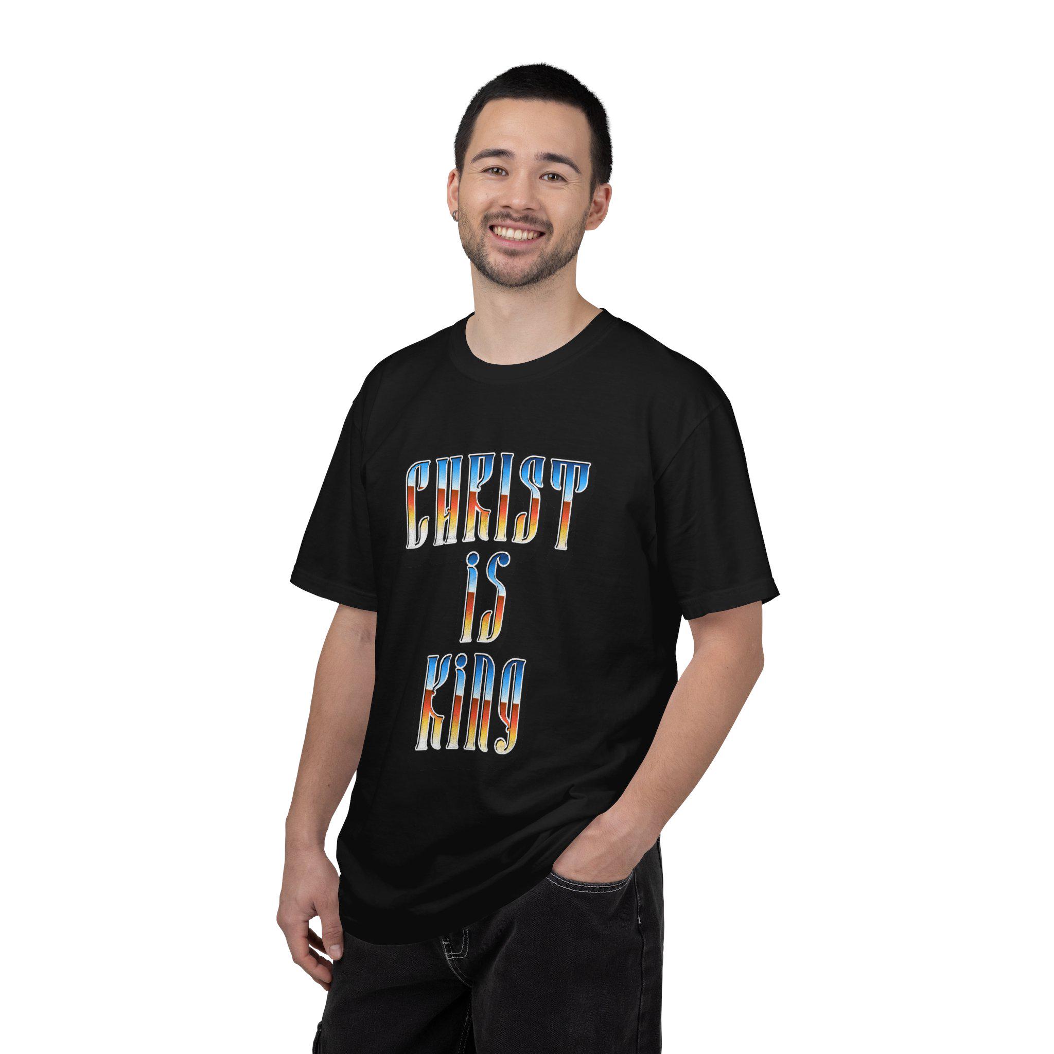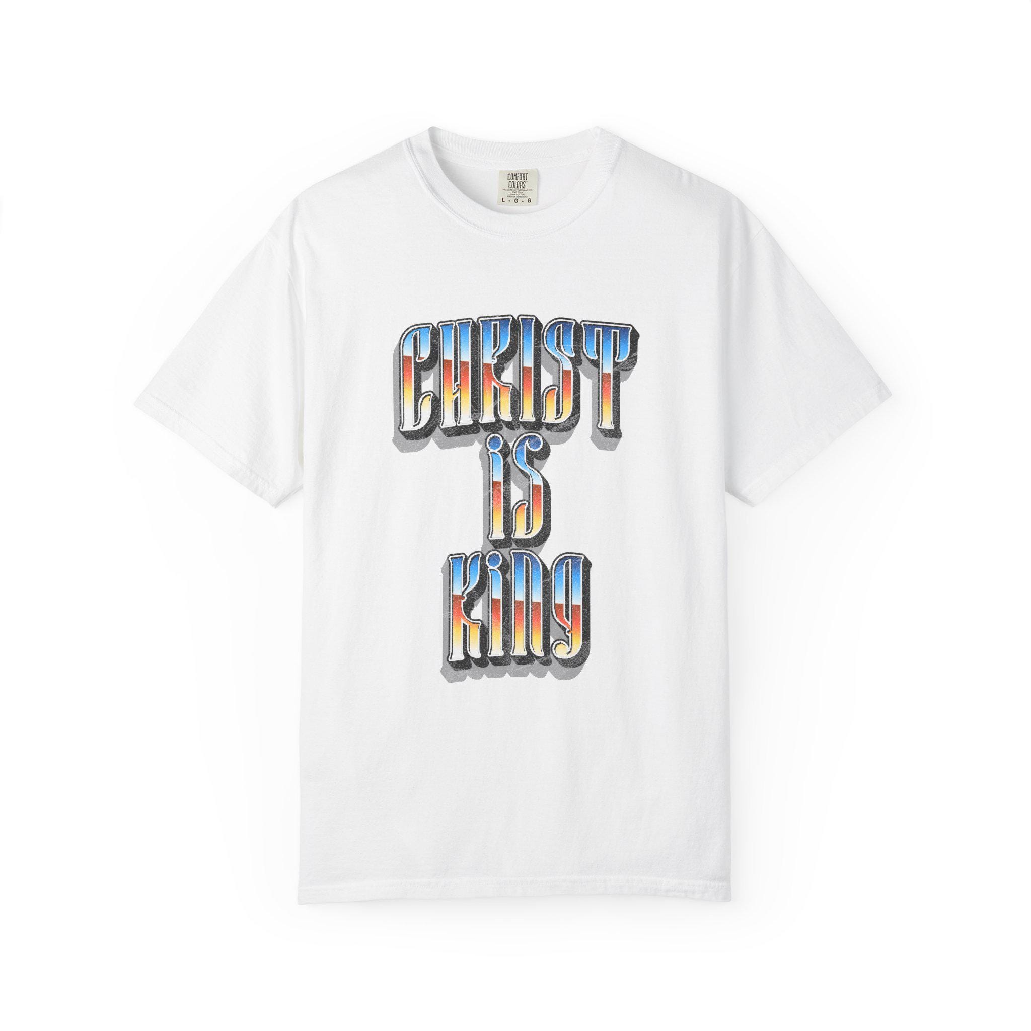 This “Christ Is King” graphic tee is a bold declaration of truth, power, and devotion. Designed with a vintage-inspired gradient and strong gothic lettering, this piece blends classic Christian conviction with modern streetwear energy.